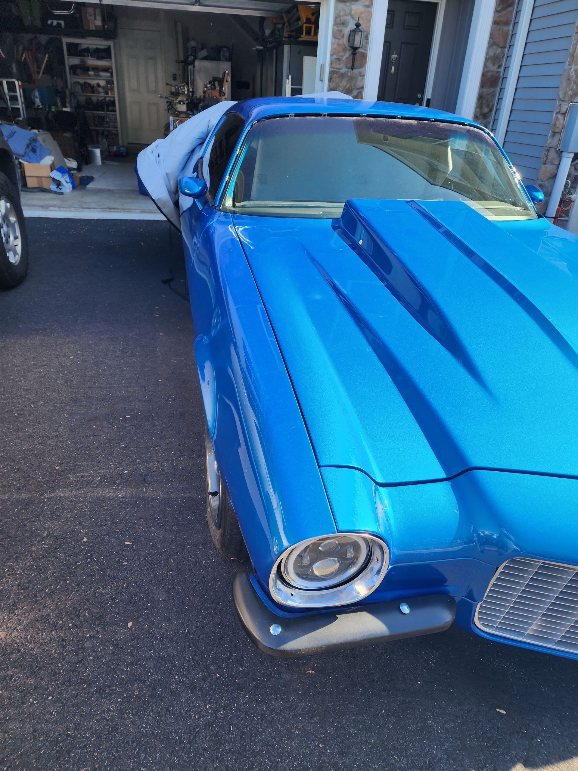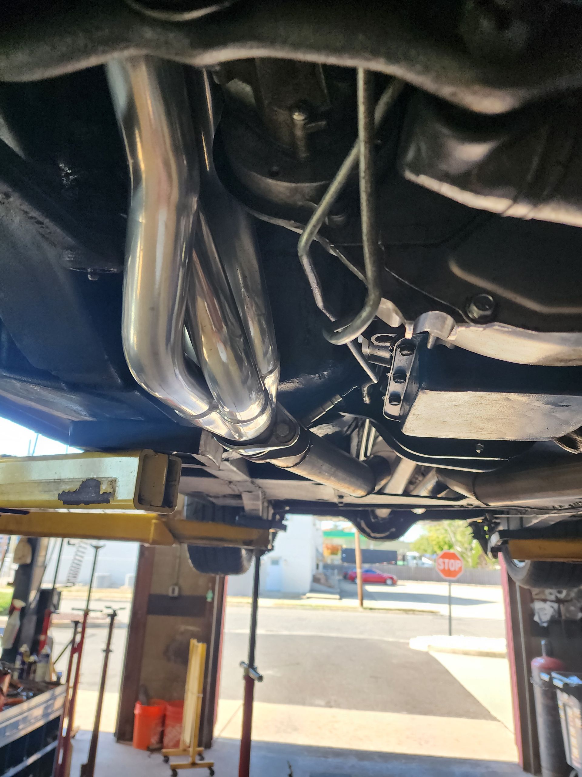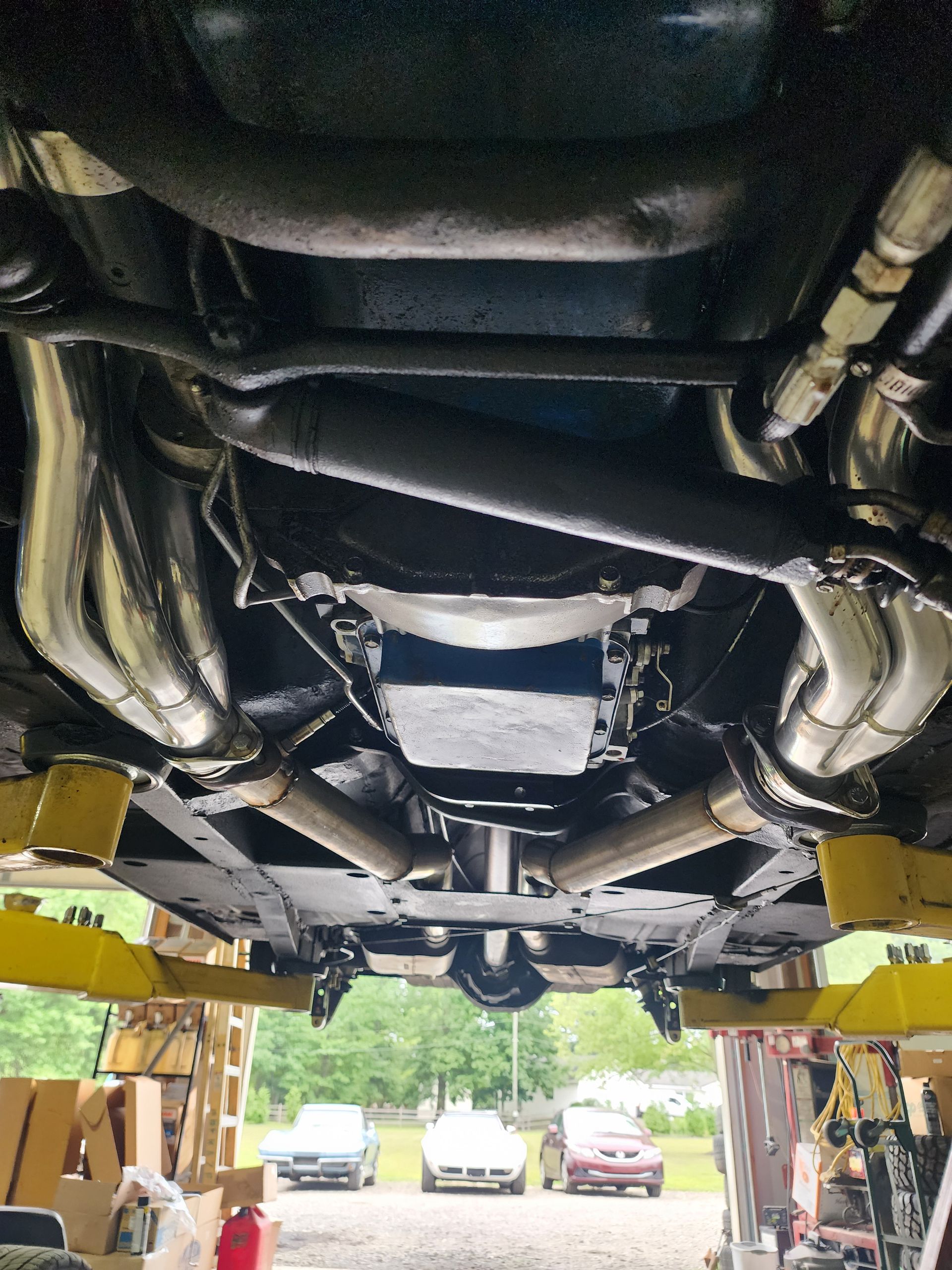 - FPA custom long tube headers, power steering, aluminum radiator, is electric cooling fan, built C4 transmission with aluminum cervo and deep pan, 3 speed auto